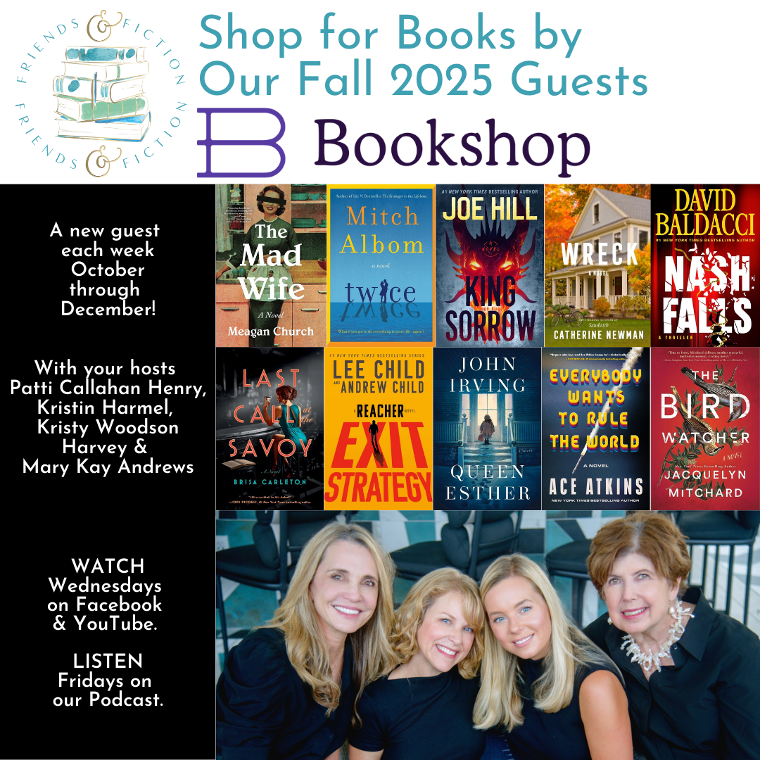 Welcome to FriendsandFiction.com, the home of the Friends & Fiction web show, the Friends & Fiction podcast, Friends & Fiction LIVE, and the Friends & Fiction community, hosted by New York Times bestselling novelists Kristy Woodson Harvey, Patti Callahan Henry, Kristin Harmel, and Mary Kay Andrews. If you love books and you’re curious about the writing world, you’re in the right place.