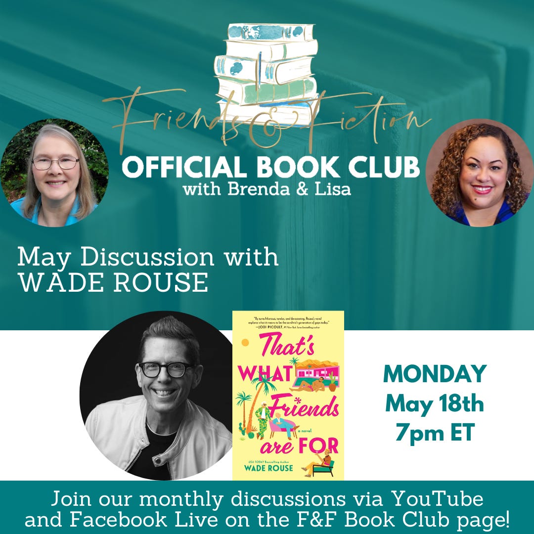 Join Brenda Gardner & Lisa Harrison for monthly book club picks and live online author chats on the Facebook page for the F&F Official Book Club with Brenda & Lisa, where they’ve amassed nearly 40,000 of their own members. You can also follow the Book Club on Instagram and subscribe to their YouTube channel where you can catch past discussions, including their most recent chat with Sarah Fox about her new novel, Definitely Maybe Not a Detective. Mark your calendars for May 18th for their next author guest, Wade Rouse, when they’ll discuss his new novel, That’s What Friends Are For. The Book Club is also hosting the 2026 F&F Reading Challenge. Join them for a different category prompt each month to read outside your comfort zone. The April prompt is to read a book recommended by a favorite librarian and for May it’s to read a book about a female detective.